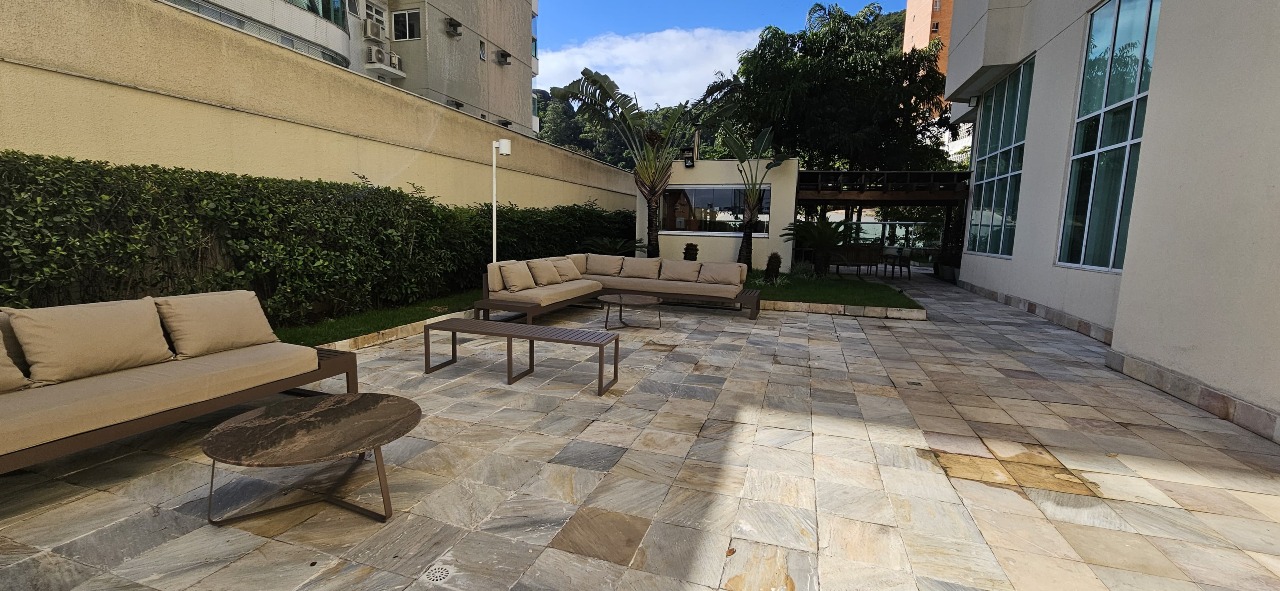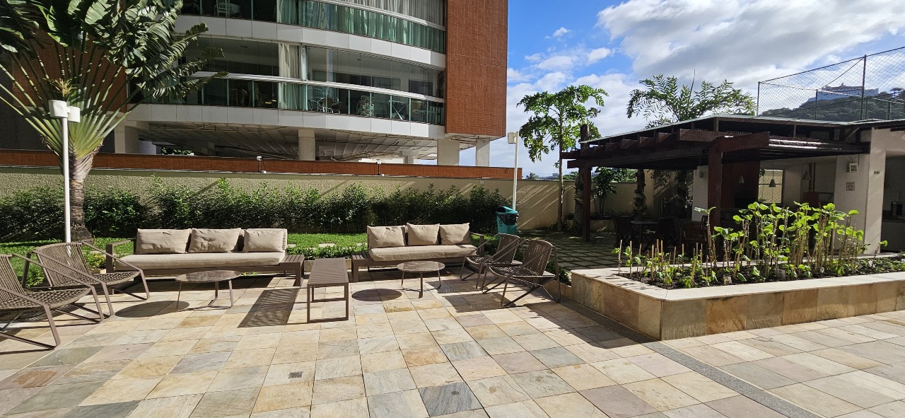 São 145m2, 3 suítes, sala para 2 ambientes, lavabo, copa, cozinha grande, área de serviço e banheiro de serviço.